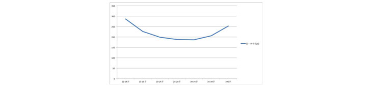 有学者对全美2009年700多万住院人口进行统计,分析了孕产妇相关并发症与孕妇年龄之间的关系(包括早产,宫内感染,产褥感染,FGR,产后出血,胎儿窒息,高血压,子痫相关疾病,前置胎盘等),发现年龄很大和年龄很小,都有较高的并发症风险,而中间年龄段(25~34岁)的发病风险相对较低(图1)。而统计胎儿染色体异常与孕妇年龄的关系(图2),可以看出,染色体异常发生率在19~21岁时最低,此后风险逐年增加,并在35岁时陡增。在40岁时,胎儿染色体异常的发生率为到1/62,而此概率在50岁时将达到1/6(如果还有幸能够受孕的话),这还不包括早孕时因染色体异常造成的流产。Zjn育儿资讯网-育儿常识全方位解读,助您开启好孕之旅